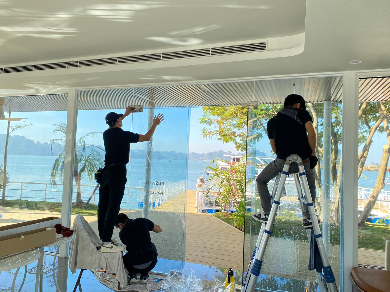 Chính vì vậy mà sảnh chờ du thuyền cũng được chú trọng đầu tư để mang đến cho khách hàng cảm giác thư thái, thoải mái khi đợi lên tàu. Khung cảnh xung quanh đầy nắng, đầy gió, trước mặt là biển bao la tuyệt đẹp, do vậy mà sảnh chờ được thiết kế hoàn toàn bằng kính.