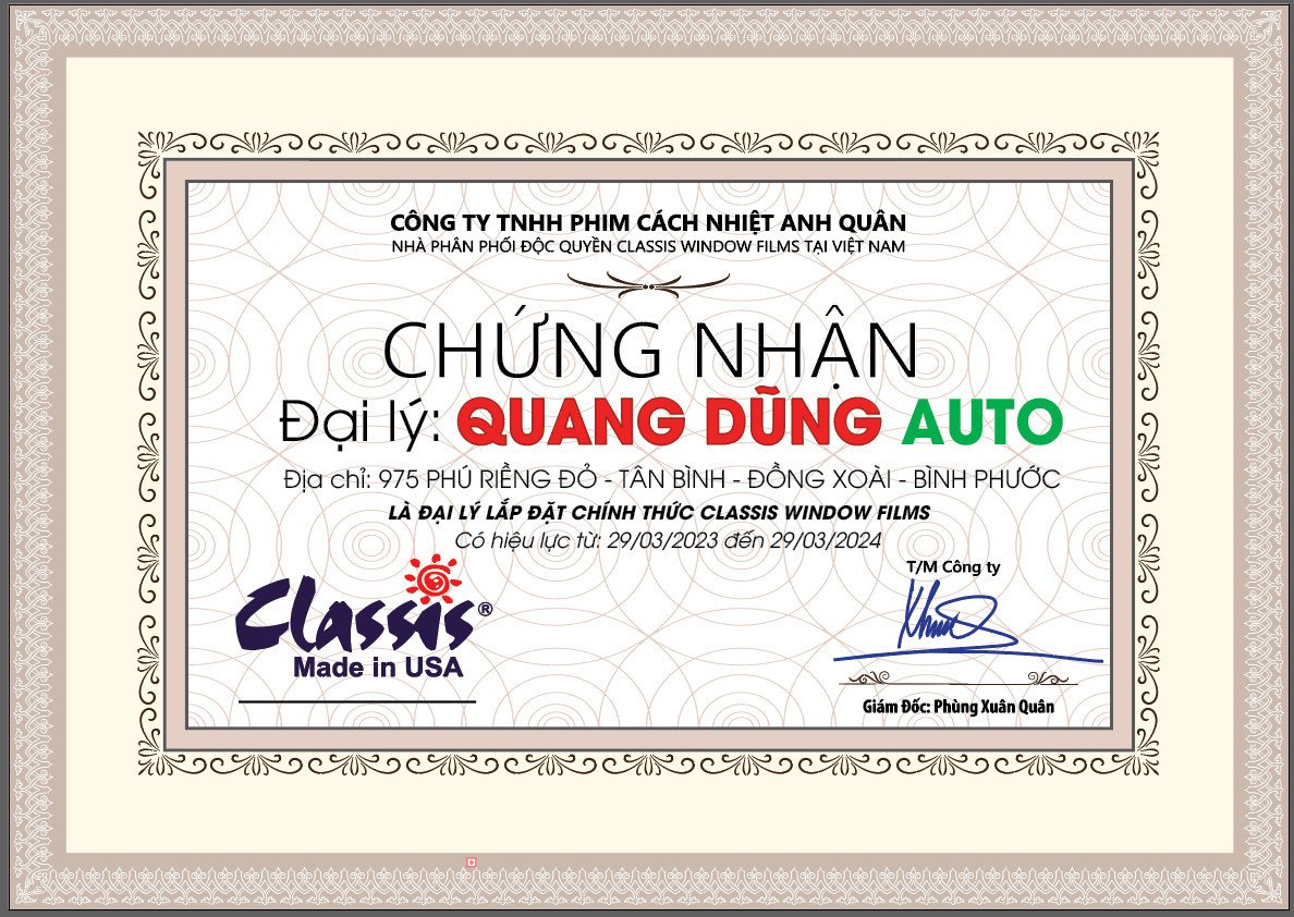 Quang Dũng Auto là một trong những Đại lý thân thiết của Classis Window Film tại Bình Phước.