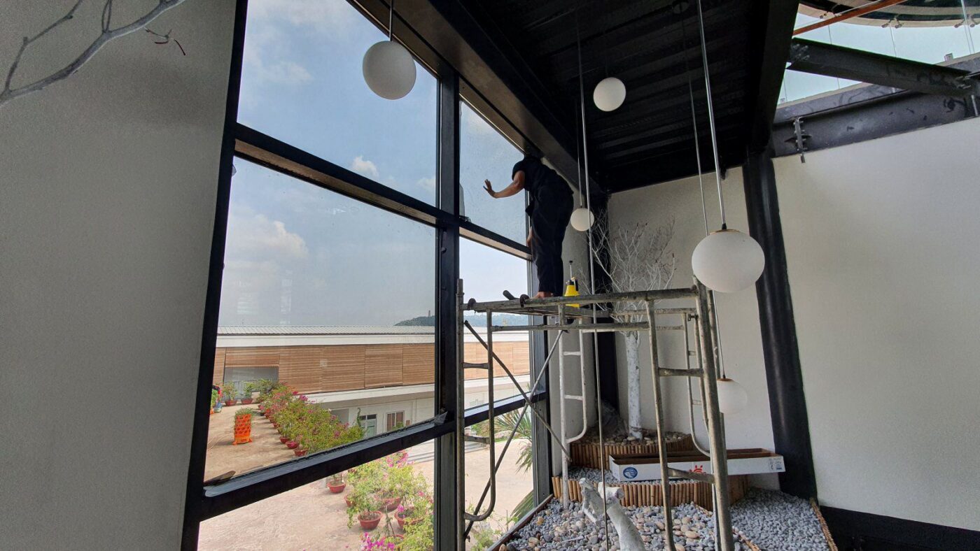Vấn đề chói lóa do thừa ánh sáng và nắng nóng khiến điều hòa quá tải đã được giải quyết triệt để. Black 20 sau khi lắp đặt cho màu kính nhuộm đen trở lên sang trọng và thẩm mỹ. Xem một số hình ảnh thi công thực tế bên dưới: